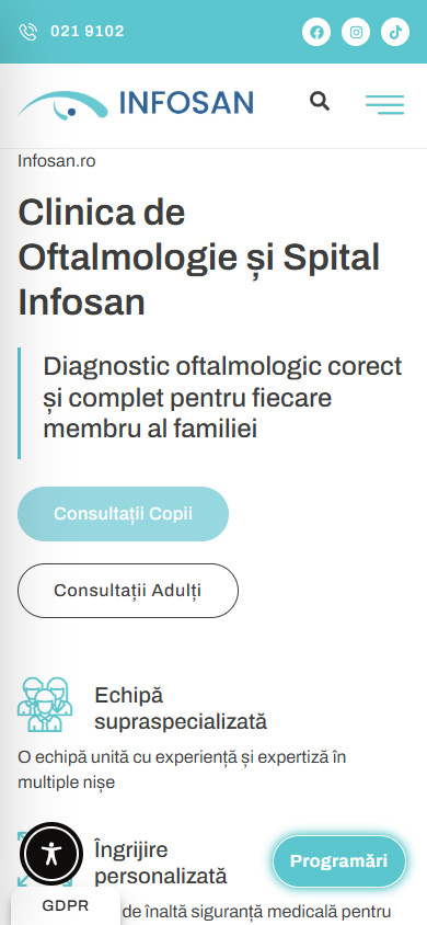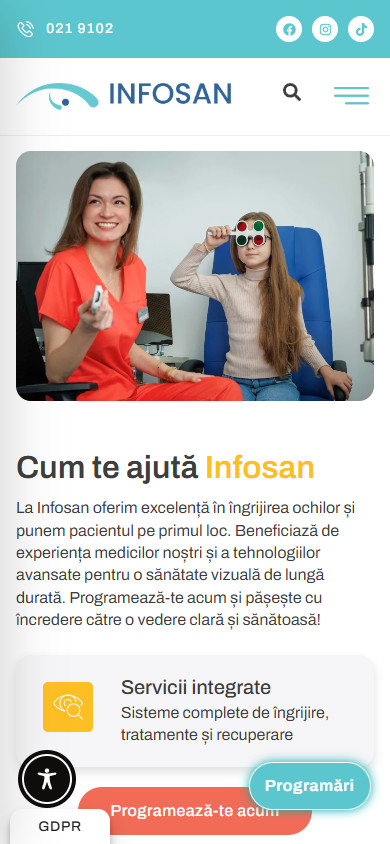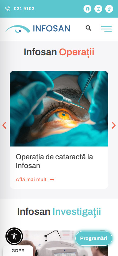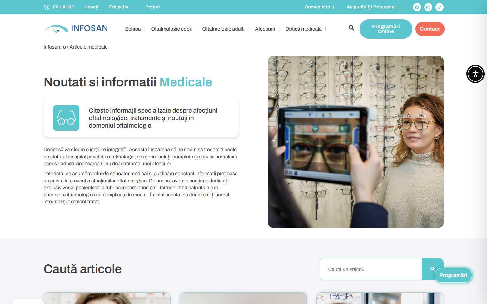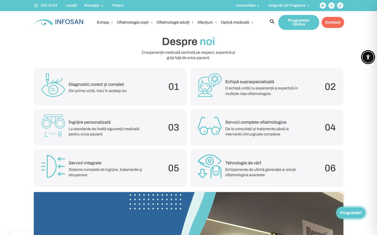 Vizitatorii site-ului sunt invitaţi să acceseze secţiunea „Programări online” sau să contacteze telefonic clinica pentru a beneficia rapid de consultaţii, investigaţii sau intervenţii în cele mai bune condiţii – astfel încât să obţină claritate vizuală şi suport de la o echipă dedicată.
